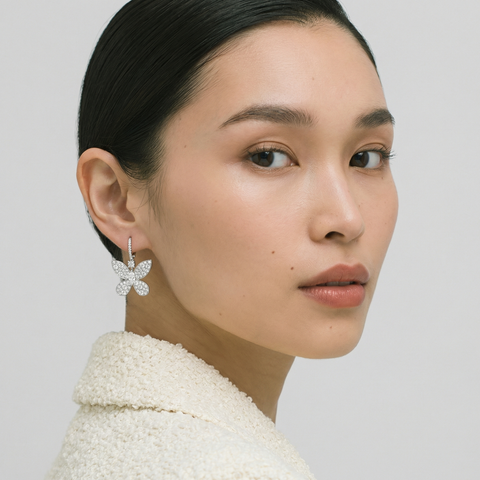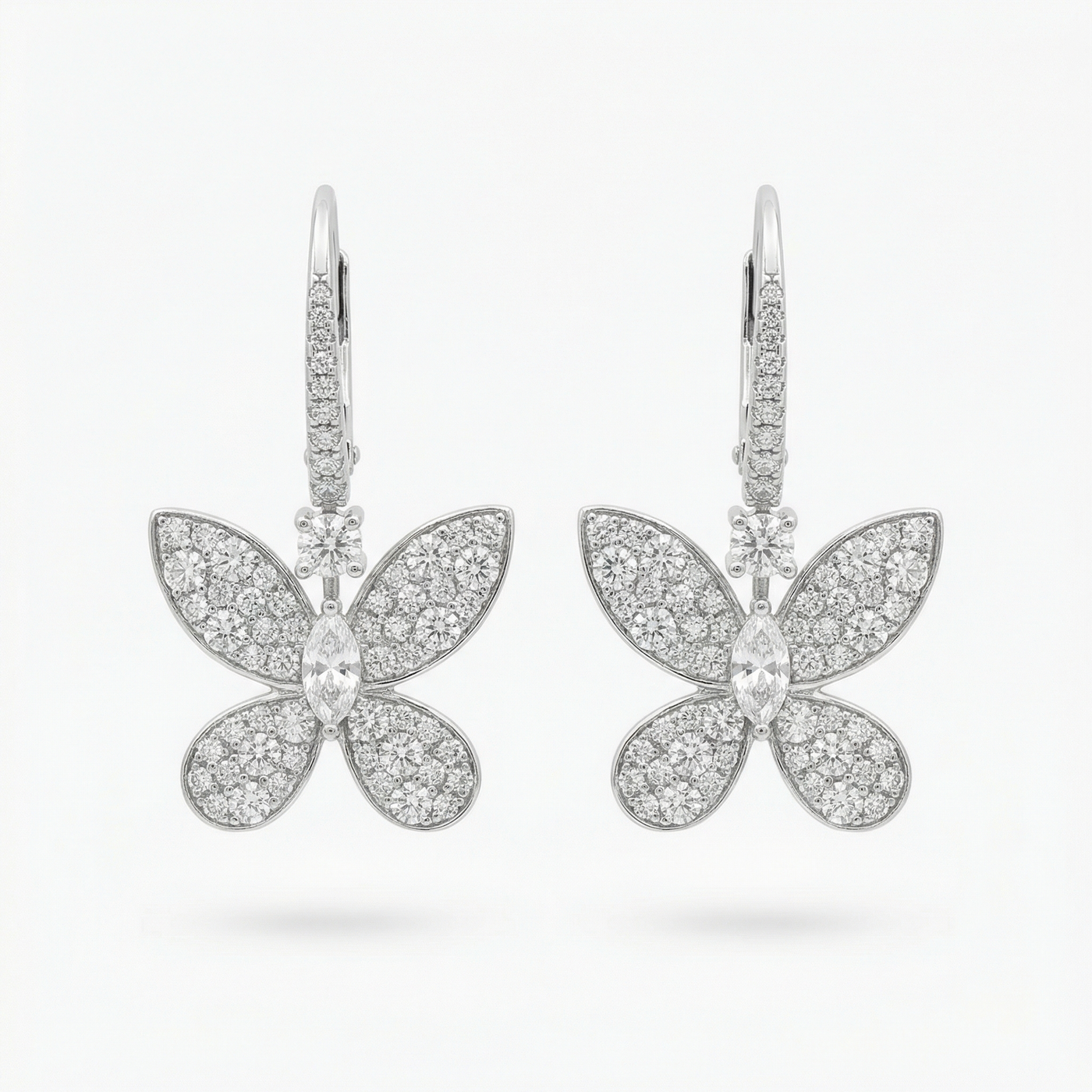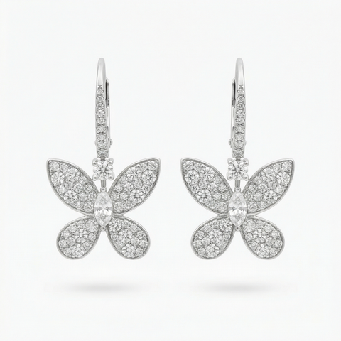 Butterfly Earrings with White Round Stone – on White Gold Sale