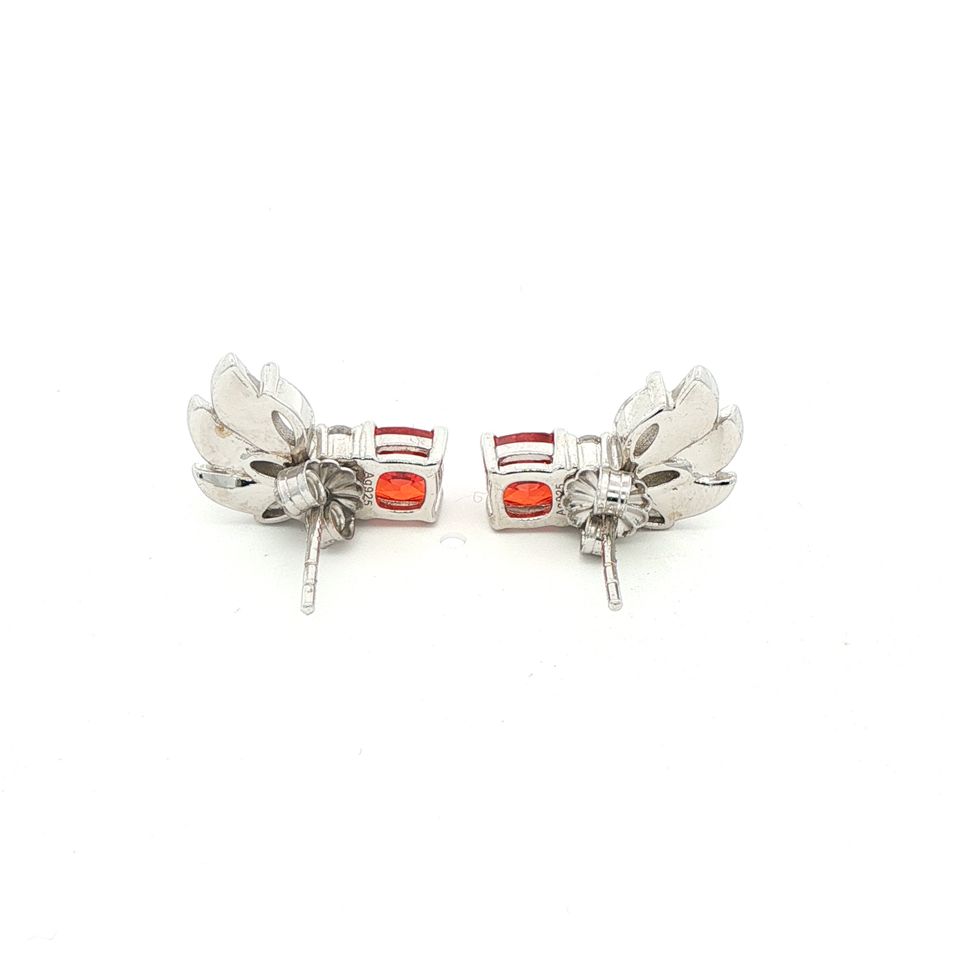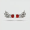 Red Wings Earrings with Red Cushion Stone – on White Gold - OS
