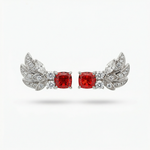 Red Wings Earrings with Red Cushion Stone – on White Gold Sale