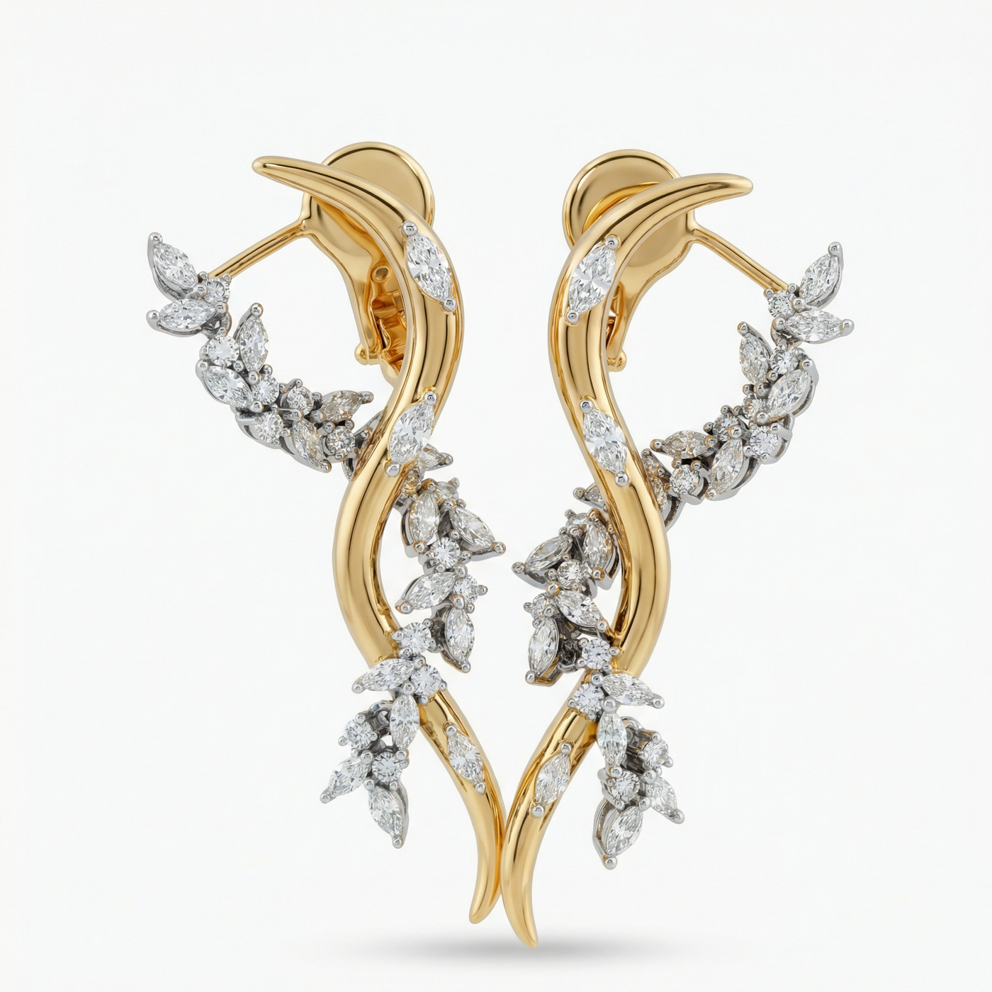 Ivy Earrings with White Marquise Stone – on Yellow Gold - OS