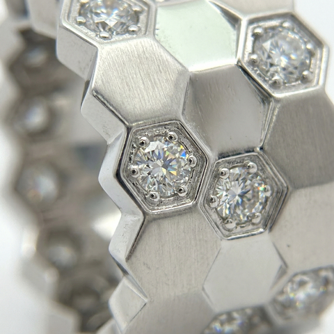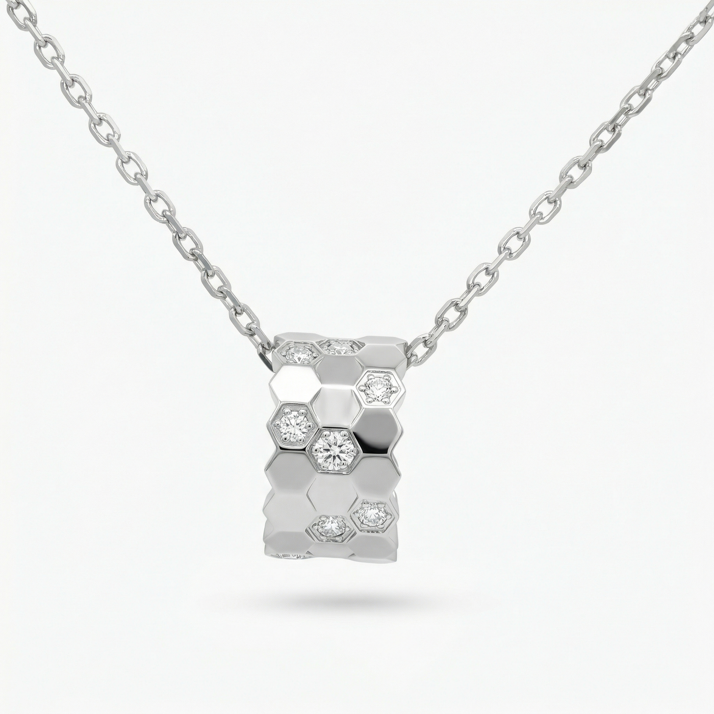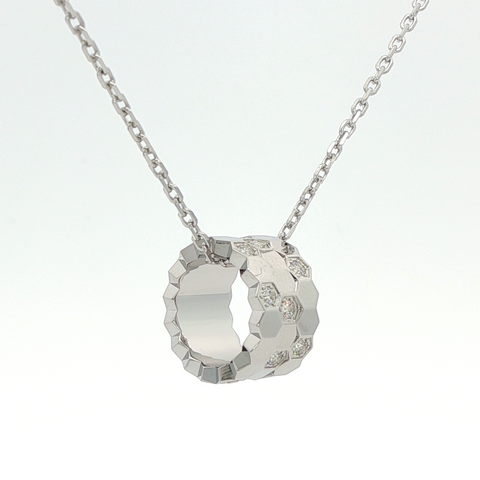 Honeycomb Necklace with White Round Stone – on White Gold - OS