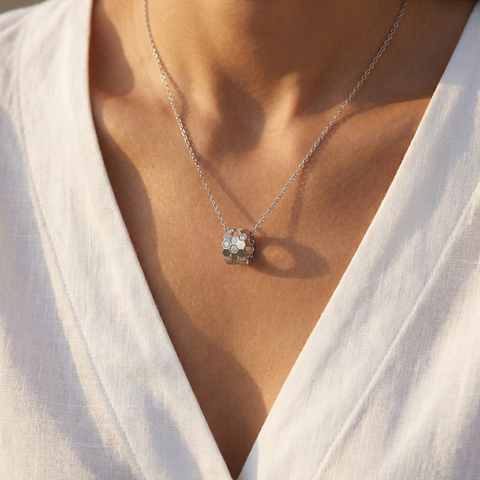 Honeycomb Necklace with White Round Stone – on White Gold Sale