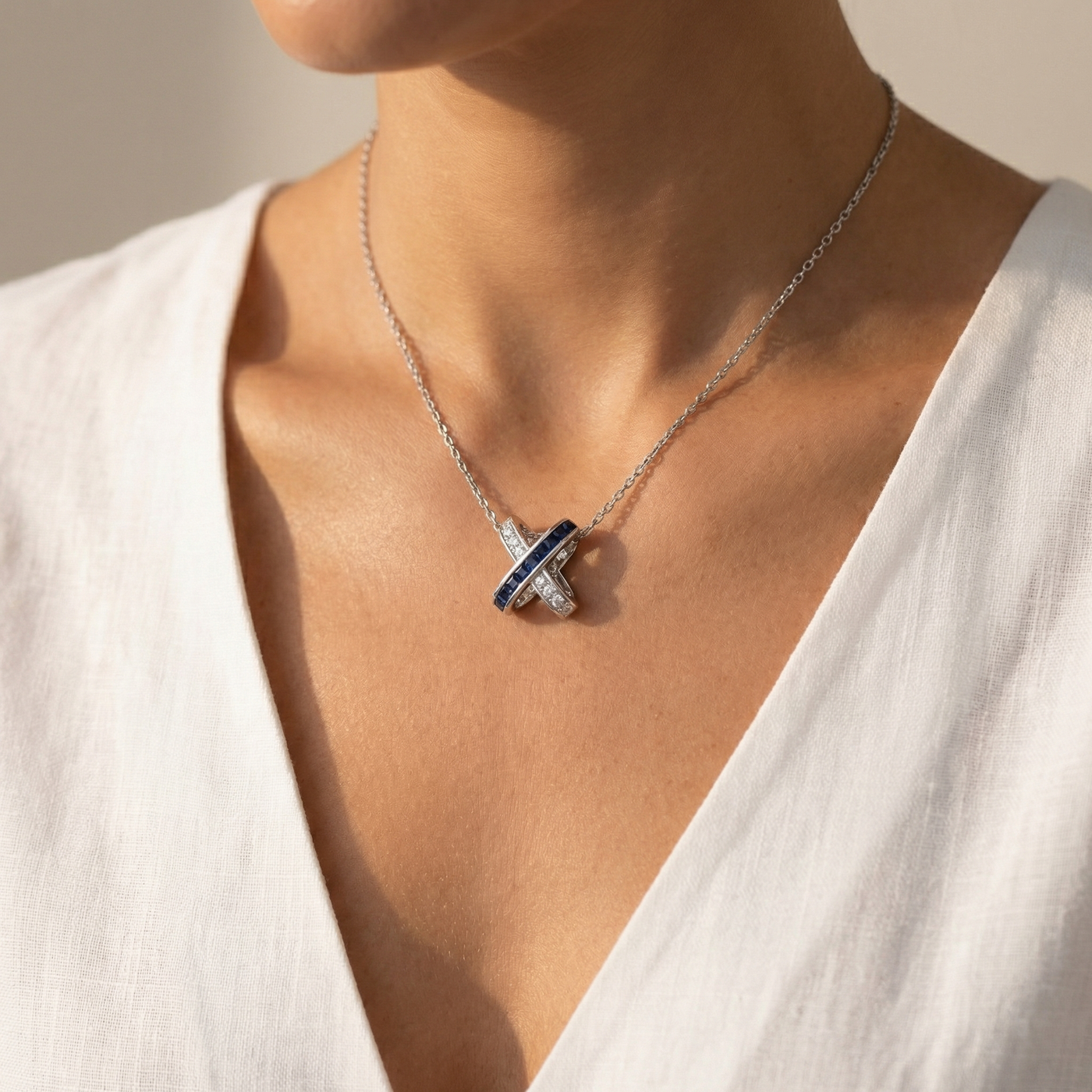 Interlink Necklace with Blue Emerald Stone – on White Gold Sale