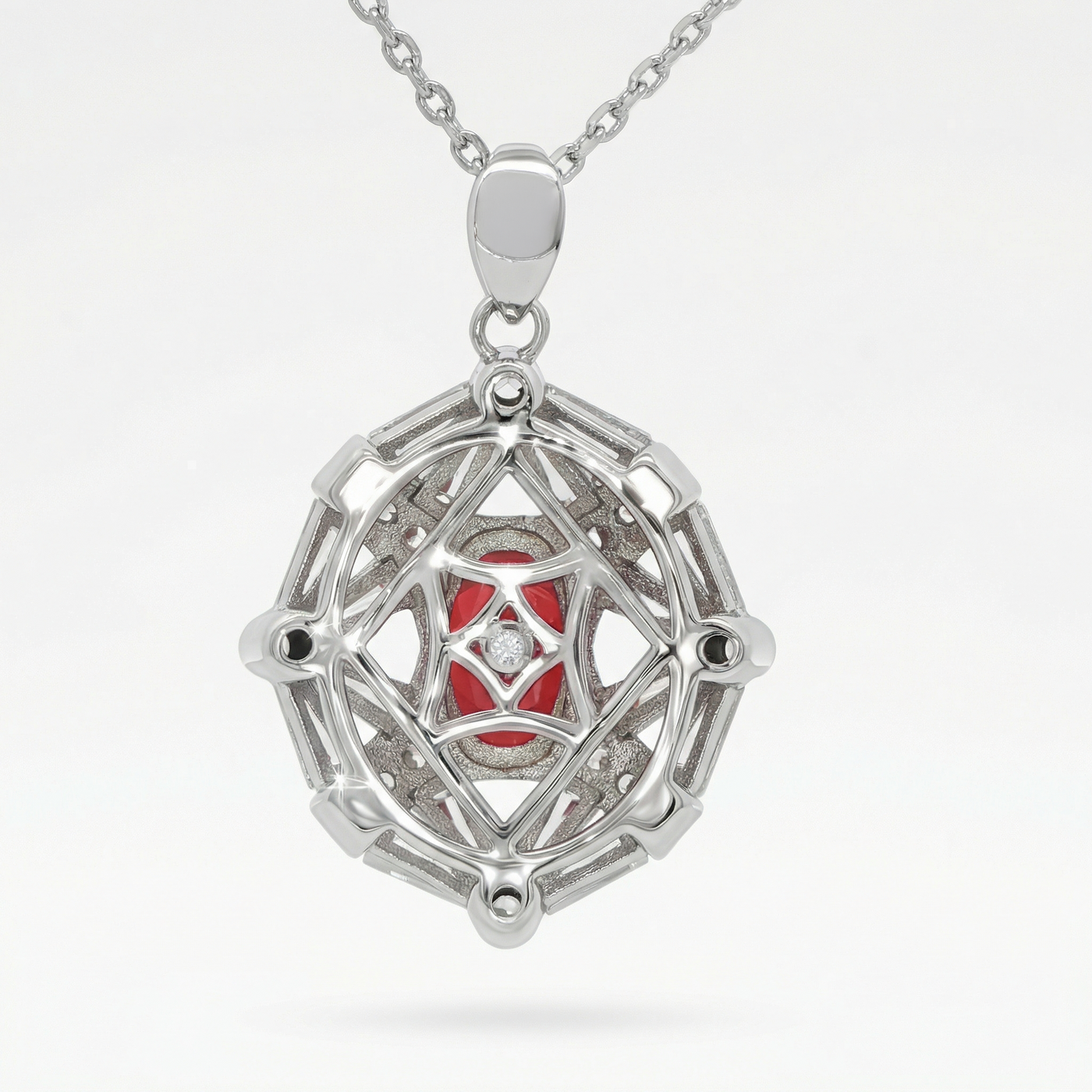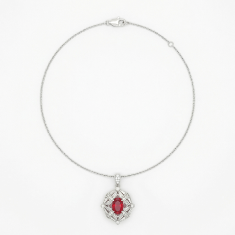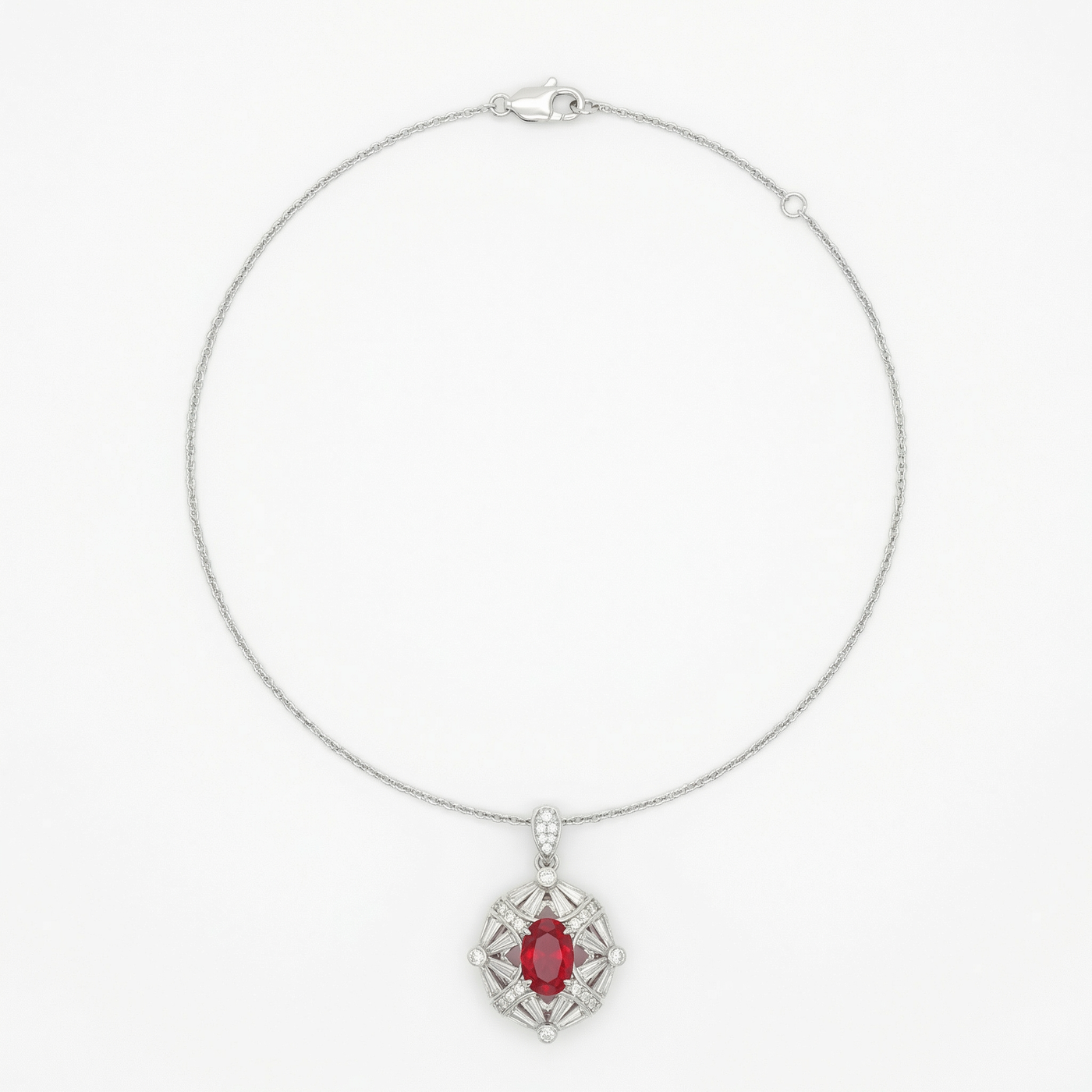 Astral Pendant Necklace with Red Oval Stone – on White Gold - OS
