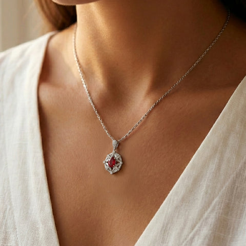 Astral Pendant Necklace with Red Oval Stone – on White Gold Sale