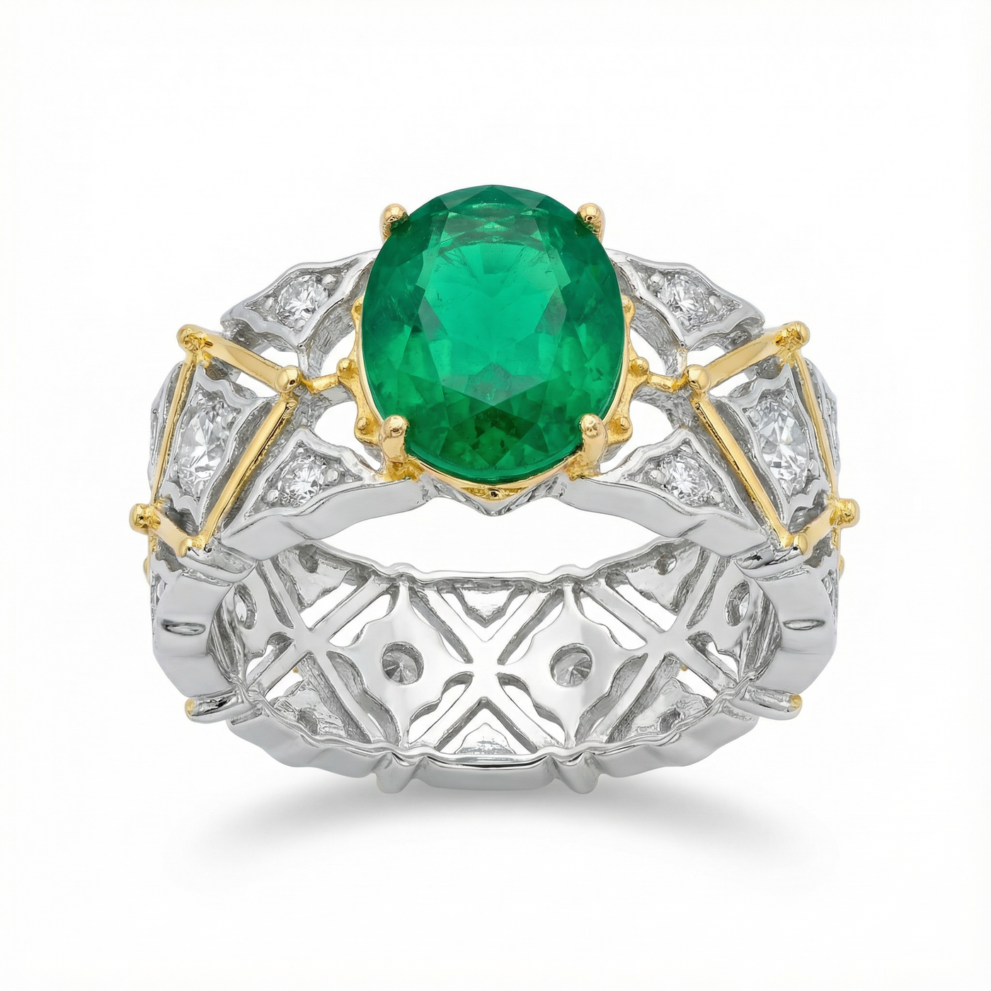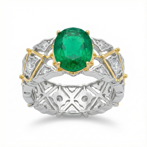 Arabesque Wide Ring with Green Oval Stone – on White Gold Sale
