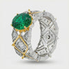 Arabesque Wide Ring with Green Oval Stone – on White Gold - US6