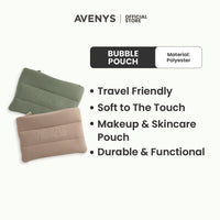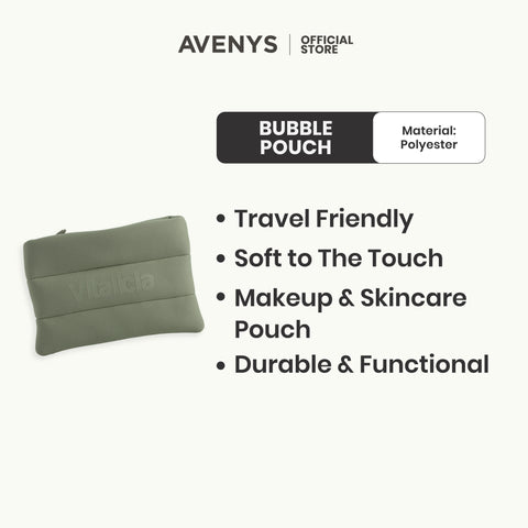 Let your skincare ride in style with the Vitalicia Bubble Pouch. Its bubbly, puffed-up shape keeps your self-care essentials snug and safe while adding a pop of fun to your routine. With water-resistant material and a durable, easy-glide zipper that keeps it all together, just take this cutie with you for those quick touch-ups and full-on glow days.